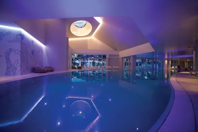 ↗室外和室內(nèi)泳池共用一個休息平臺,這將兩個設(shè)施無縫結(jié)合了起來。