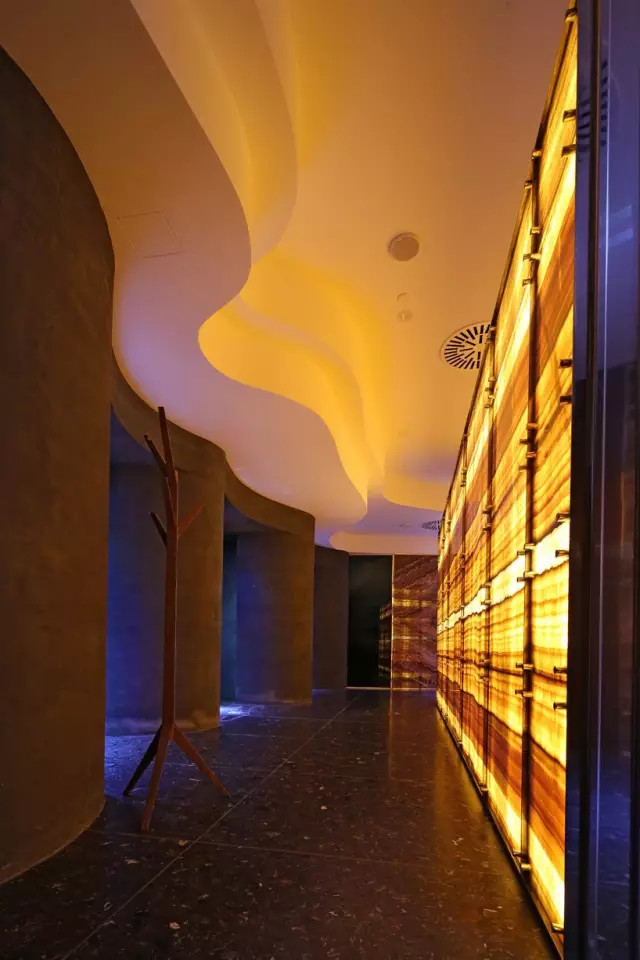 ↗地下走廊通過背光的瑪瑙片進行照明