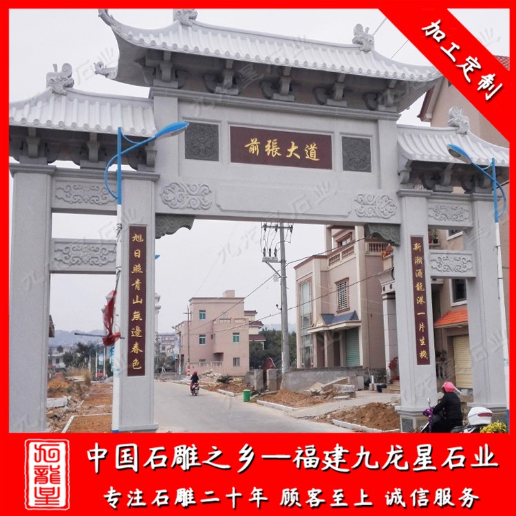 石雕牌坊(預(yù)算村莊入口石牌坊價格需要考慮的因素)——九龍星石業(yè)