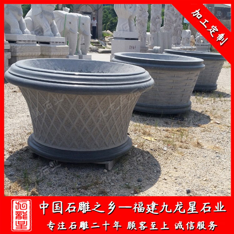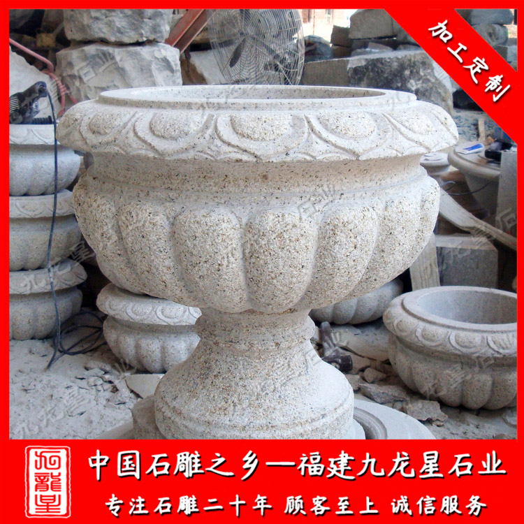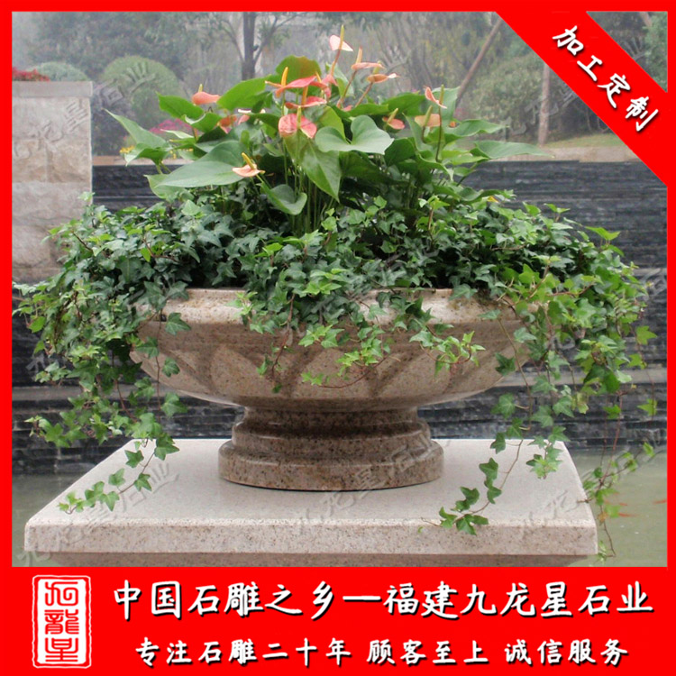 石雕花盆生產(chǎn)廠家很多集中在福建惠安,福建九龍星石業(yè)發(fā)展有限公司位于--福建惠安,是花盆石雕廠家,九龍星人相信每塊石頭都獨(dú)馥藝術(shù)氣息,所以善用千年文化雕鑿工藝的研究、傳承、融合和發(fā)揚(yáng),使石雕作品承載藝術(shù)文化、體現(xiàn)更多社會(huì)價(jià)值。九龍星從事石雕花盆加工制作20多年,石雕花盆圖片全,有中式石雕花盆、歐式石雕花盆。石雕花盆材質(zhì)可以為花崗巖、青石、漢白玉等等,望廣大新老客戶前來參觀考察和選購。