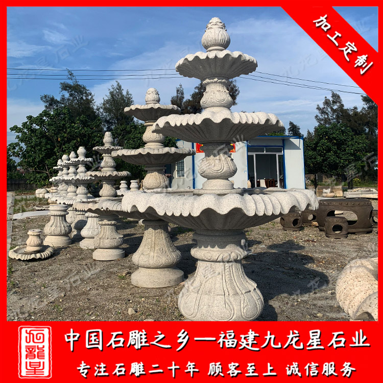 石雕噴泉或石材噴泉,大小可以根據(jù)設(shè)計(jì)要求定制,款式豐富多樣。石雕噴泉水景是現(xiàn)在各處隨處可見的裝飾藝術(shù),石雕噴泉水景的形態(tài)、造型多樣化,精巧而別致,有圓形、有蓮花形,有多層的、和單層的。也有噴泉式水缽、水缽的加工制作需要許多工序,即人機(jī)相結(jié)合的形式打造出du一無二的石雕藝shu產(chǎn)品。