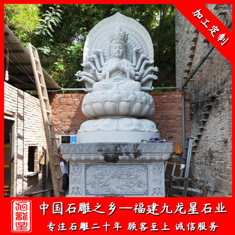 石雕觀音(石雕觀音廠家批發(fā)石雕千手觀音 3.6米千手觀音石雕像)——九龍星石業(yè)