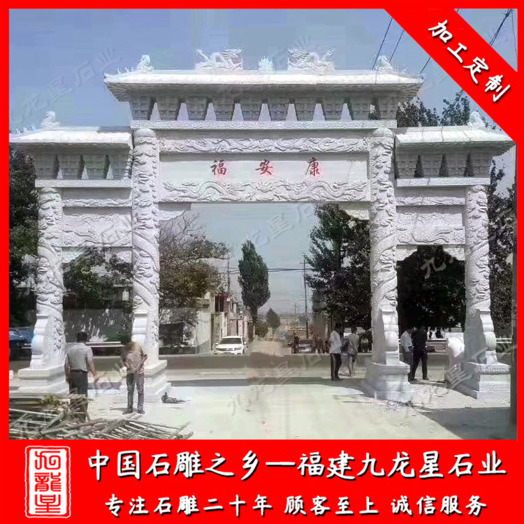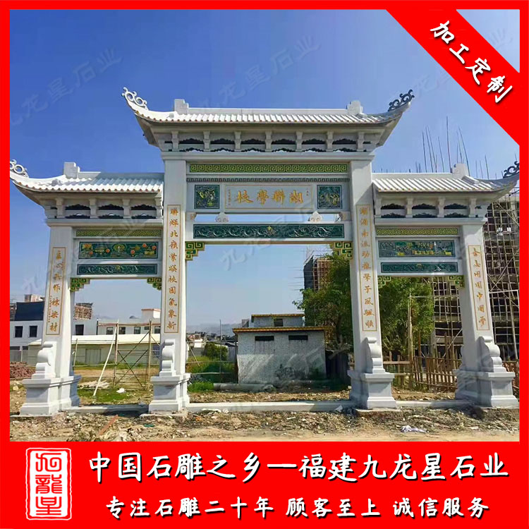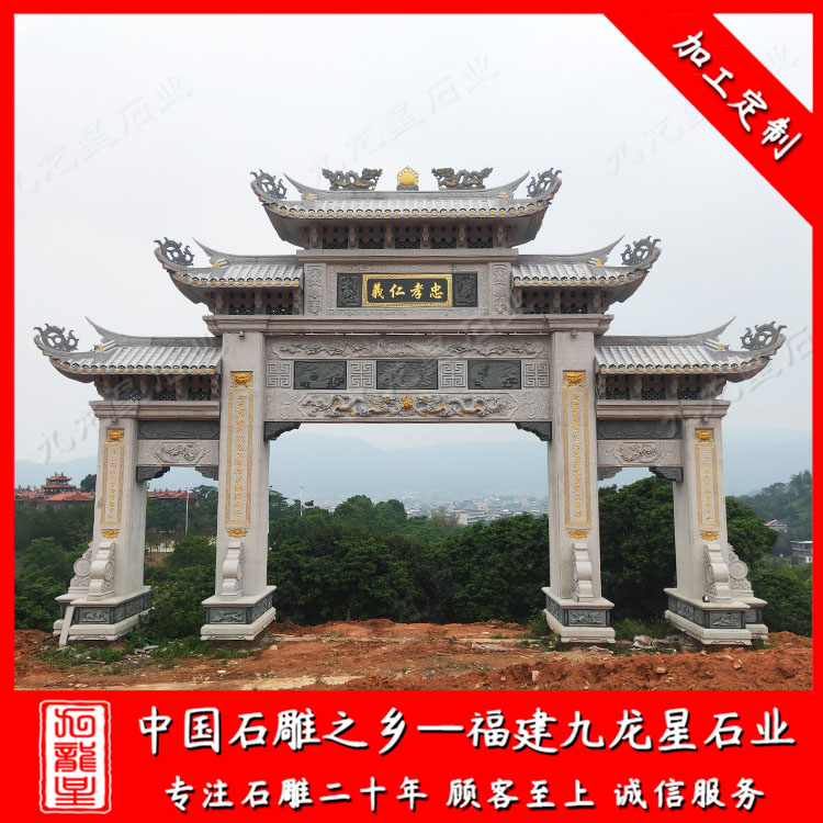 隨著新農(nóng)村的建設(shè),三門四柱石牌坊常被安裝在村莊入口,是整個(gè)村莊精神風(fēng)貌的象征。那么,村莊入口三門四柱石牌坊款式有哪些呢?