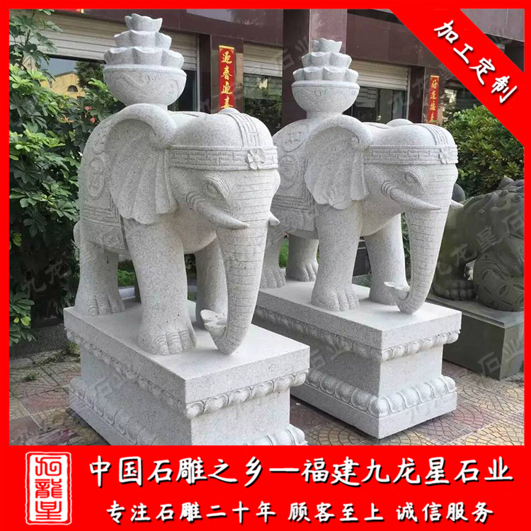 石雕大象是常見一款的石雕瑞獸擺件、吉祥動物擺件。石雕大象擺件在寺廟大門口、景區(qū)公園、公司工廠門口、自家別墅庭院也會擺放一對石雕大象。