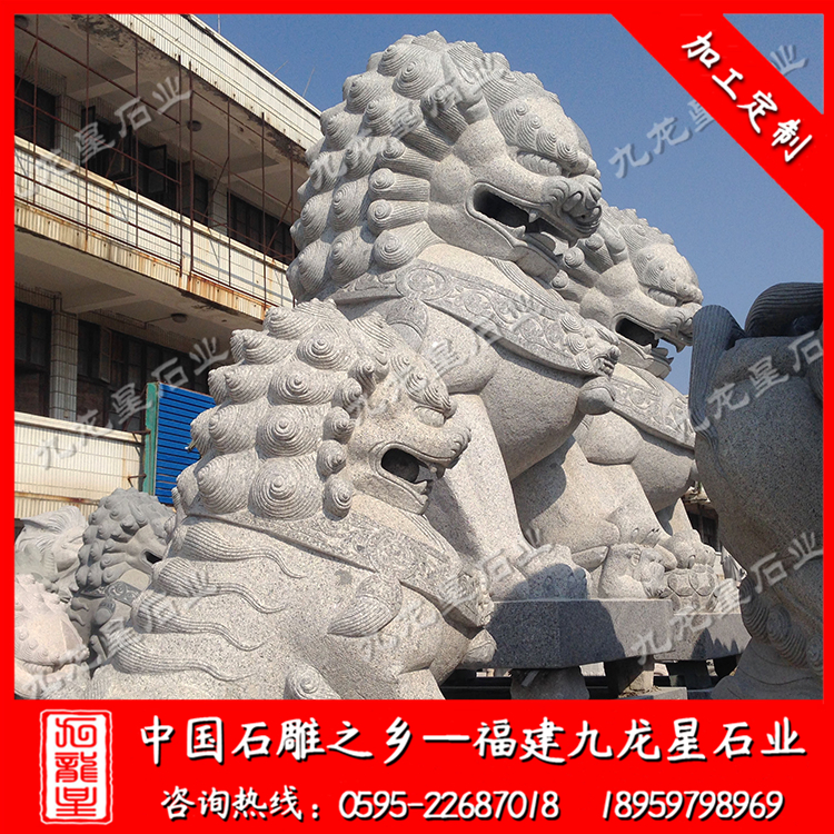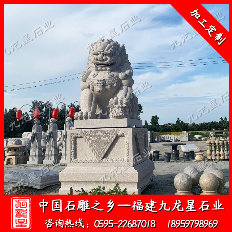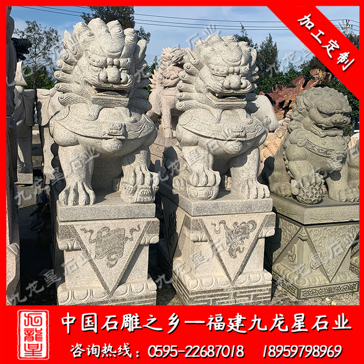石雕獅子(花崗巖石雕石獅子 門口石獅子擺放)——九龍星石業(yè)