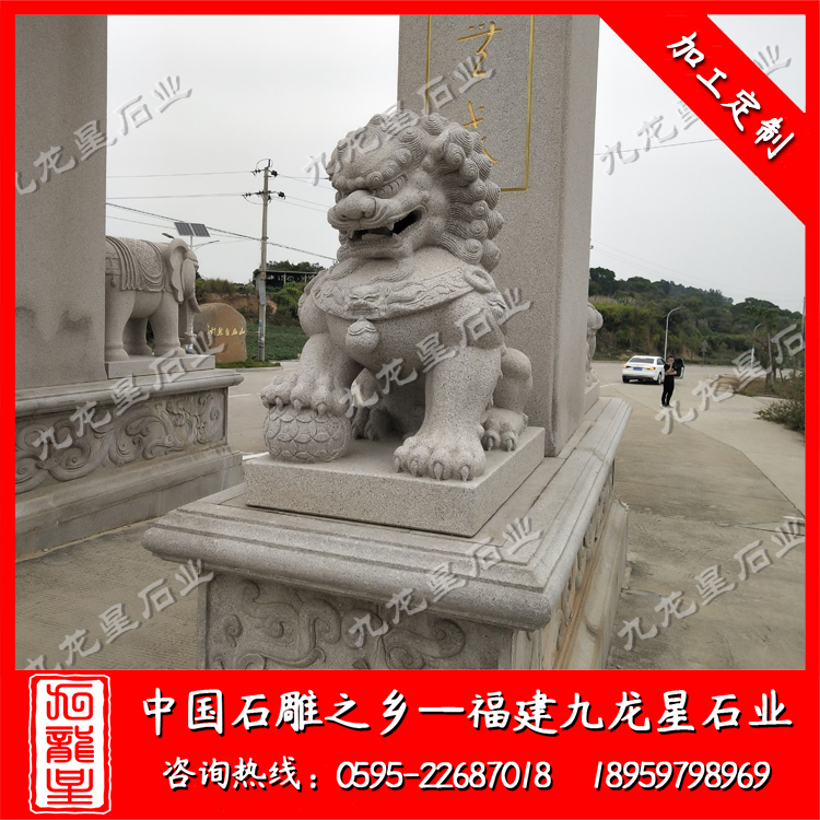 北京獅的造型一般尊嚴(yán)而又大氣,是守衛(wèi)門(mén)戶確保安寧的瑞獸,因?yàn)楠{子是獸中 ,它體態(tài)壯碩雄健、威錳無(wú)比、氣勢(shì)非常。統(tǒng)治者認(rèn)為獅子不但可以避邪,還可帶來(lái)祥瑞之氣。北京獅為雌雄一對(duì),獅頭飾鬃髦,頸懸響鈴,肌肉發(fā)達(dá),氣勢(shì)雄偉。雌獅前左腳下有一幼獅仰臥作嬉戲狀,雄獅前右腳撫踩一繡球。底座有繁縟精致的卷葉紋。石雕北京獅瑞獸一種,百獸 ,勇不可擋,威震四方,不但可以避邪,且可帶來(lái)祥瑞之氣,能解除多種形煞,亦加強(qiáng)官威或屋主之陽(yáng)氣,如果窗口見(jiàn)到不利之沖克,如沖煞、天斬煞等,可放一對(duì)石獅面向口可化煞,且有生權(quán)之意,適合官職人員擺放,古時(shí)衙門(mén)前就是擺放獅子鎮(zhèn)守。