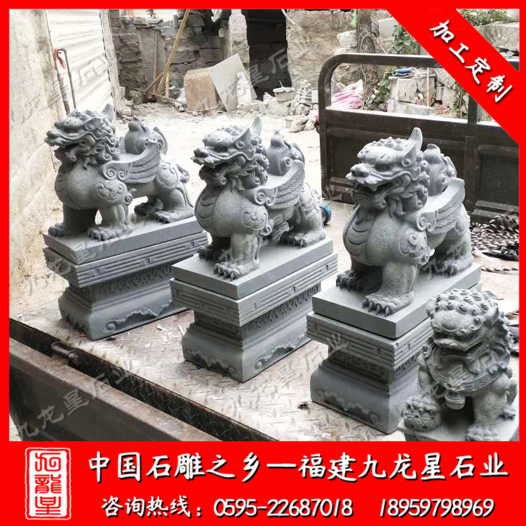 石雕貔貅(擺放石雕貔貅 門口石貔貅 青石貔貅加工)——九龍星石業(yè)