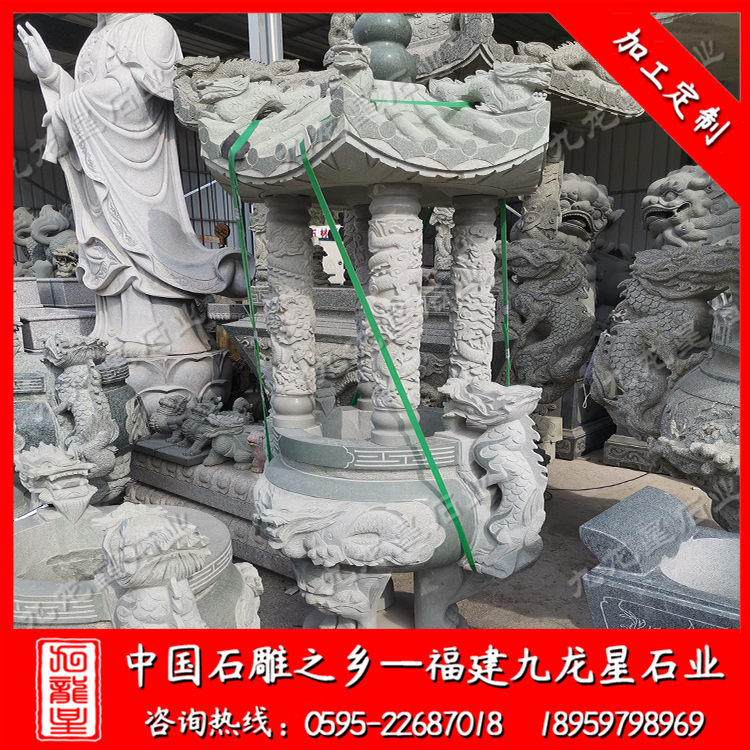 石雕香爐一般使用青石雕刻而成。在工藝上,惠安石雕香爐可謂是惠安石雕工藝的集錦,圓雕的整體造型、鏤空雕的靈獸裝飾、浮雕的奇花異草、線雕的銘文異刻、種種工藝的組合將一塊塊頑石“點(diǎn)化”為能夠傳承百年的實(shí)用工藝品!令人不得不感慨中國勞動(dòng)人們腦洞大開的智慧和鬼斧神工的石雕塑造工藝。