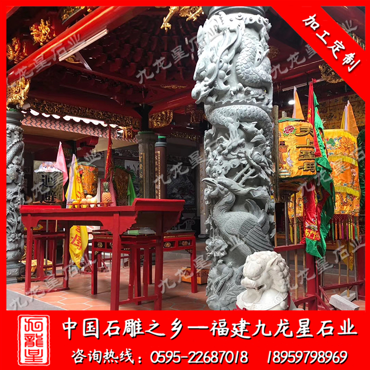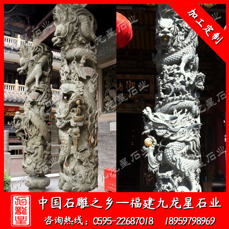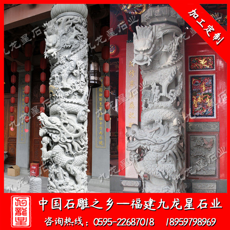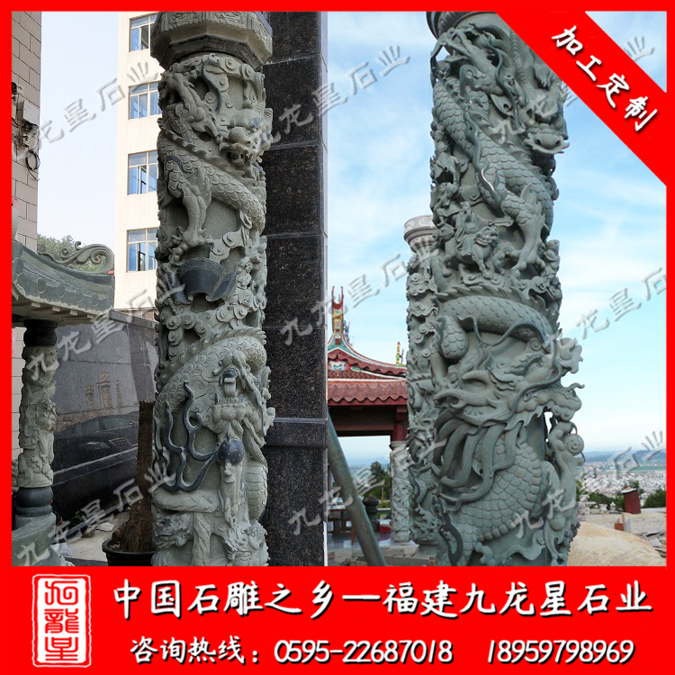 石雕龍柱(石雕蟠龍柱定制廠家 寺廟青石龍柱雕刻)——九龍星石業(yè)