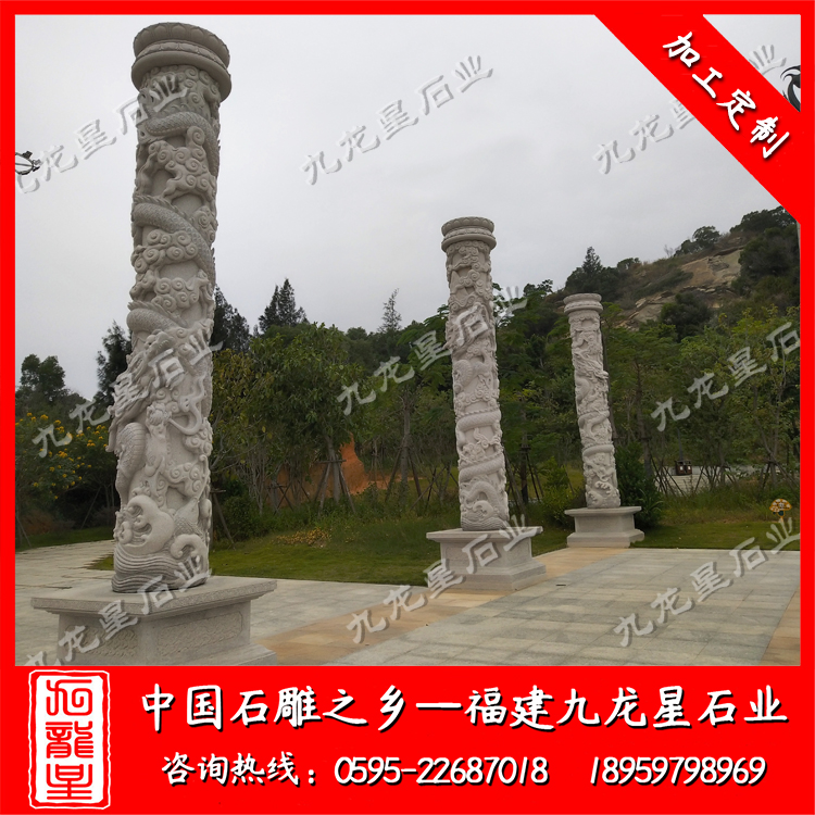石龍柱在早期的樣式結(jié)構(gòu)是比較小的,因?yàn)槿狈I(yè)的設(shè)備儀器,在雕刻工藝方面也是比較簡約樸素的,隨著近現(xiàn)代國家對石雕行業(yè)的支持以及各種先進(jìn)機(jī)器設(shè)備的問世,如今的石龍柱在雕刻工藝上顯得愈發(fā)的精美,工匠師傅的雕刻手法也是花樣百出。龍一直以來都是作為中華民族的象征和圖騰,將其雕刻在石柱之上,一方面作為石雕裝飾品可以點(diǎn)綴城市環(huán)境,一方面也體現(xiàn)了中華民族生生不息的生命力,因此我們也是經(jīng)??梢栽诟鞣N市政廣場和公園處看到它的身影,很多人都發(fā)現(xiàn)了各地?cái)[放的石龍柱的樣式和造型都是不一樣的,下面就來了解其有幾種常見的樣式。