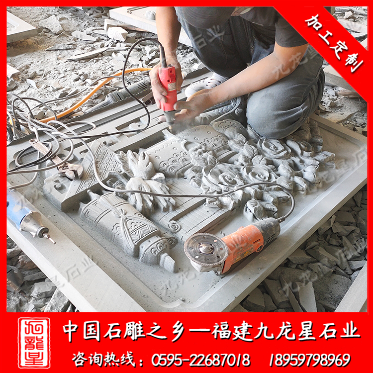 石雕浮雕在寺廟宗祠中占了越來越重要的地位。寺廟外墻浮雕在內容、形式和材質上與圓雕一樣豐富多彩。外墻浮雕常見的材料有青石、花崗巖、白麻、芝麻黑、羅源青、古田青等等。室內浮雕多半用于大幅面的背景墻面,很多設計師利用浮雕的立體視覺效果,展現了很強的動感和張力。