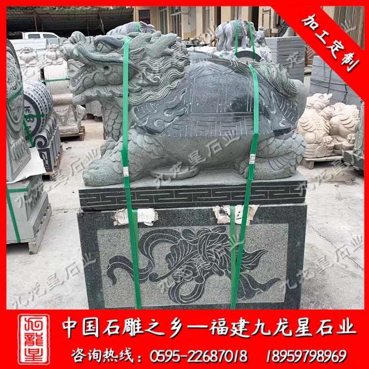石雕龍龜采用優(yōu)等青石雕刻而成 石雕龍龜是由龍頭和龜身組合而成的吉祥瑞獸,龍龜,瑞獸一種,主吉祥招財,化三煞。龍龜放在財位可催財,放在三煞位或水氣較 重之地最有效,古人有云:“要快發(fā),斗三煞”。龍龜在位能化口舌兼加強人緣。龍龜有忍耐、負重、長壽、權(quán)威的象征,在眾多吉 祥之物中,此獸是最為祥瑞之一者。