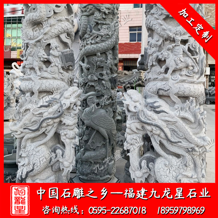 石雕龍柱(惠安石雕龍柱生產(chǎn)廠家 祠堂大型石龍柱)——九龍星石業(yè)