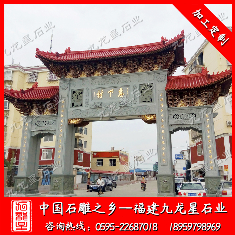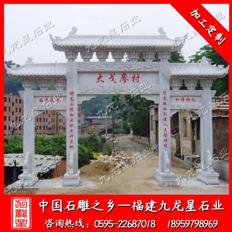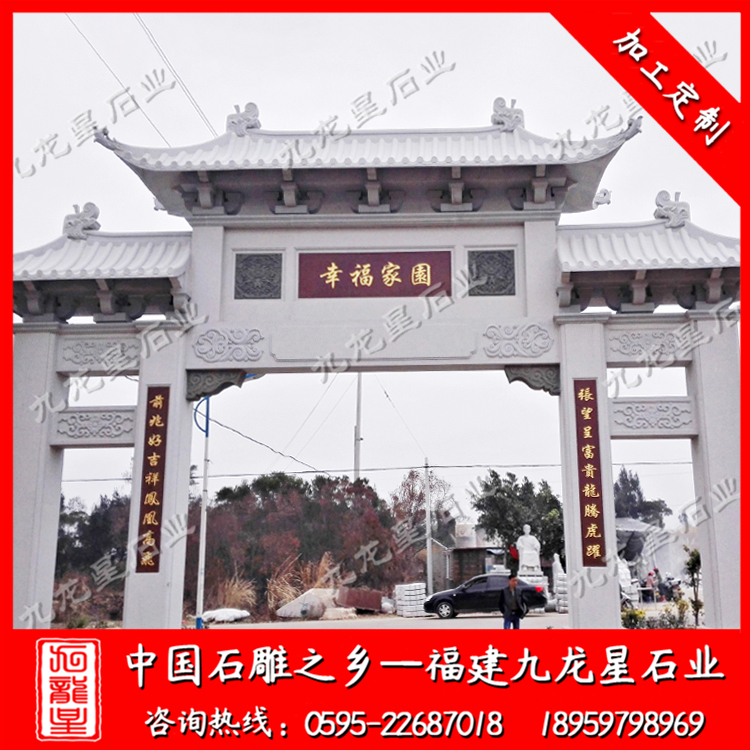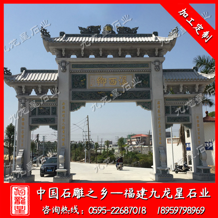 石雕牌坊(花崗石石雕牌坊廠家 村口石雕牌坊定制)——九龍星石業(yè)