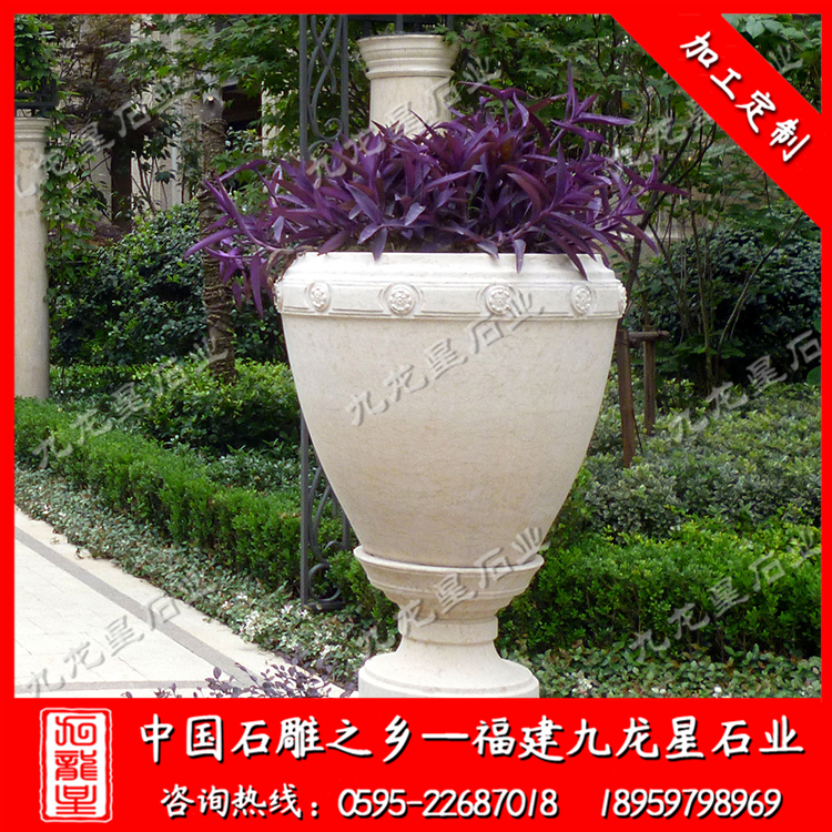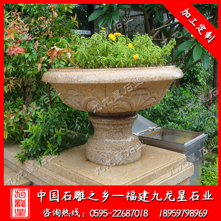 石雕花盆以其雕刻精美性、表現(xiàn)細(xì)節(jié)的細(xì)膩性、大氣美觀的造型、以及能長(zhǎng)久地在室內(nèi)戶外場(chǎng)所使用的特點(diǎn),受到很多人的青睞。因此石雕花盆被大量運(yùn)用在城市或園林景觀建設(shè)當(dāng)中,成為人們常見(jiàn)的花草栽種器具。很多地產(chǎn)開(kāi)發(fā)商或小區(qū)物業(yè)、景觀設(shè)計(jì)的設(shè)計(jì)師們?cè)谶M(jìn)行空間裝飾布局的時(shí)候都會(huì)合理的運(yùn)用石雕花盆來(lái)營(yíng)造一種良好的空間裝飾氛圍。