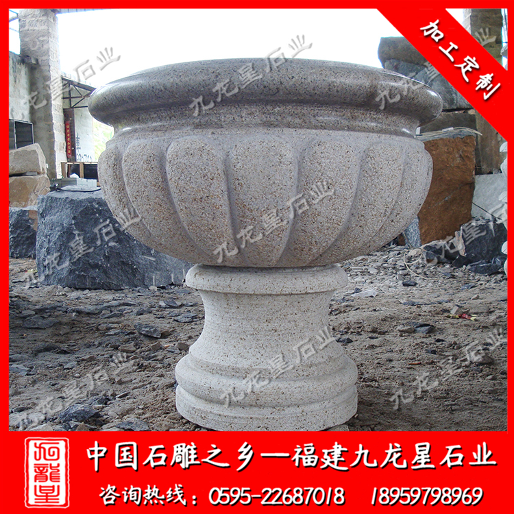 石雕花缽(小區(qū)石雕花盆 歐式花缽 室外花缽雕刻)——九龍星石業(yè)