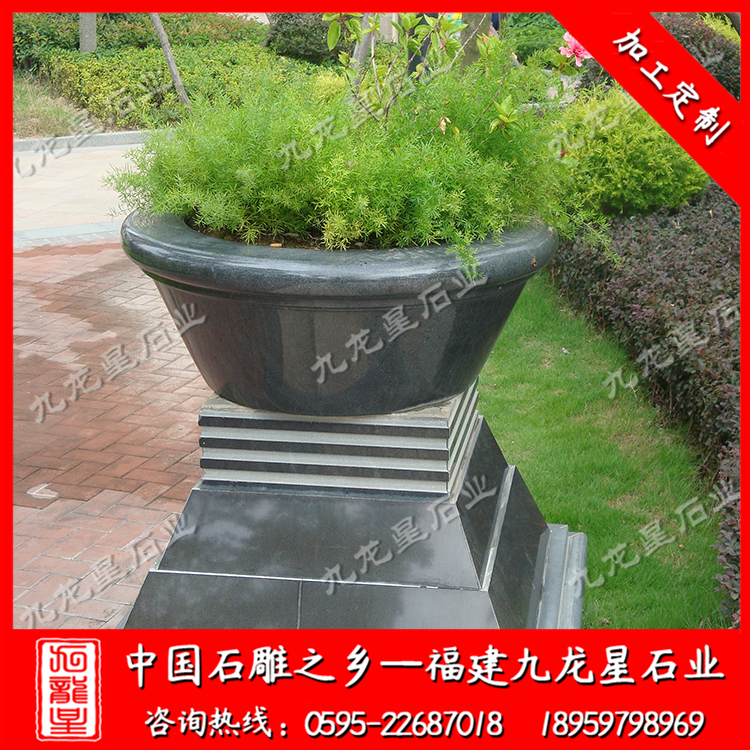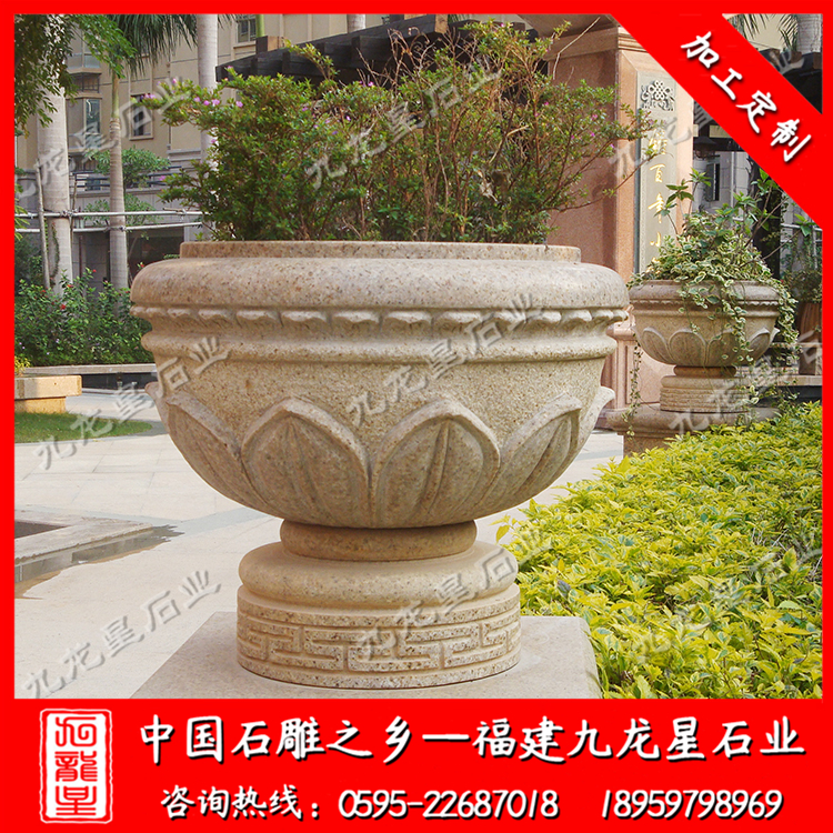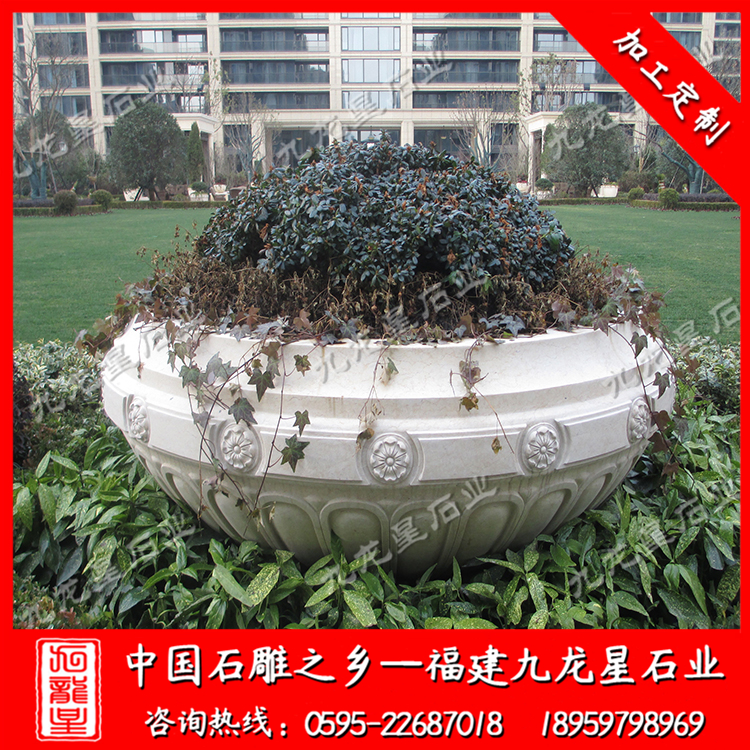 小區(qū)石雕花盆是采用天然石頭精雕細琢而成的石雕花盆,形態(tài)逼真,栩栩如生。石雕花盆質(zhì)地堅硬致密、強度高、抗風化、耐腐蝕、耐磨損、吸水性低,鮮艷的色澤還能保存百年以上,顏色美觀。 適用于小區(qū),廣場,園林,酒店,學(xué)校,戶外園林景觀工程等場所 。作為新型的花卉應(yīng)用形式,石雕花盆具有花壇和其他花盆無法達到的優(yōu)勢,與花壇相比,石雕花盆靈活,大多能夠移動,外形美觀,造型新穎多樣,還可以進行組合和裝飾。 使用石雕花盆美化環(huán)境時,可根據(jù)石雕花盆樣式、大小的不同,進行各式各樣的藝術(shù)組合。