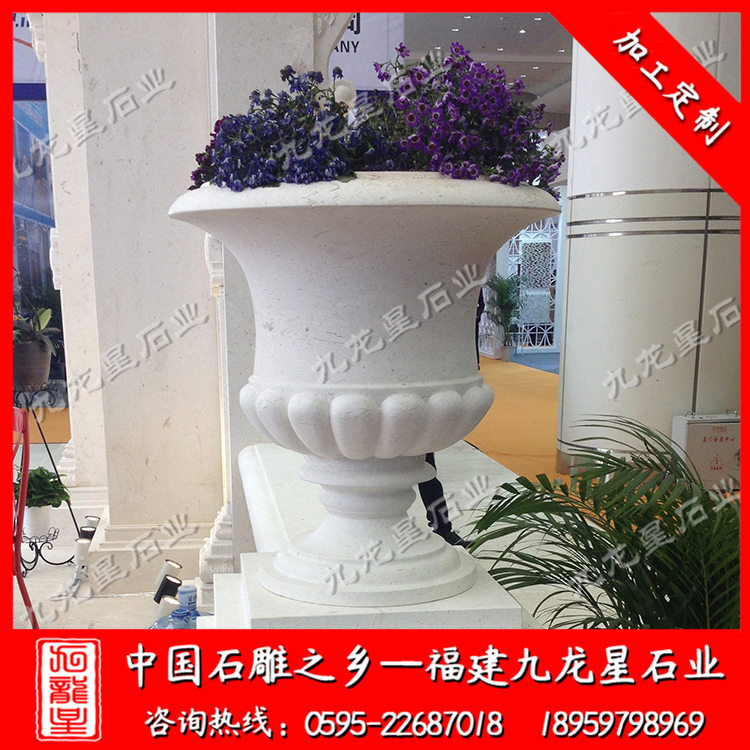 石雕花缽(小區(qū)石雕花盆 大理石花缽 石頭花盆雕刻)——九龍星石業(yè)