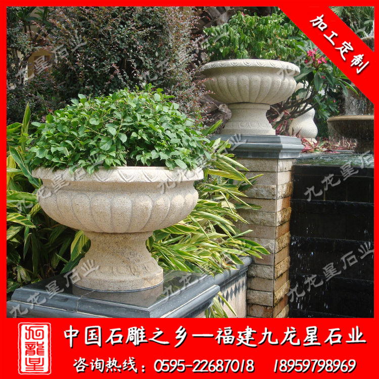 石雕花缽(石雕花缽多少錢 園林景觀庭院花缽)——九龍星石業(yè)