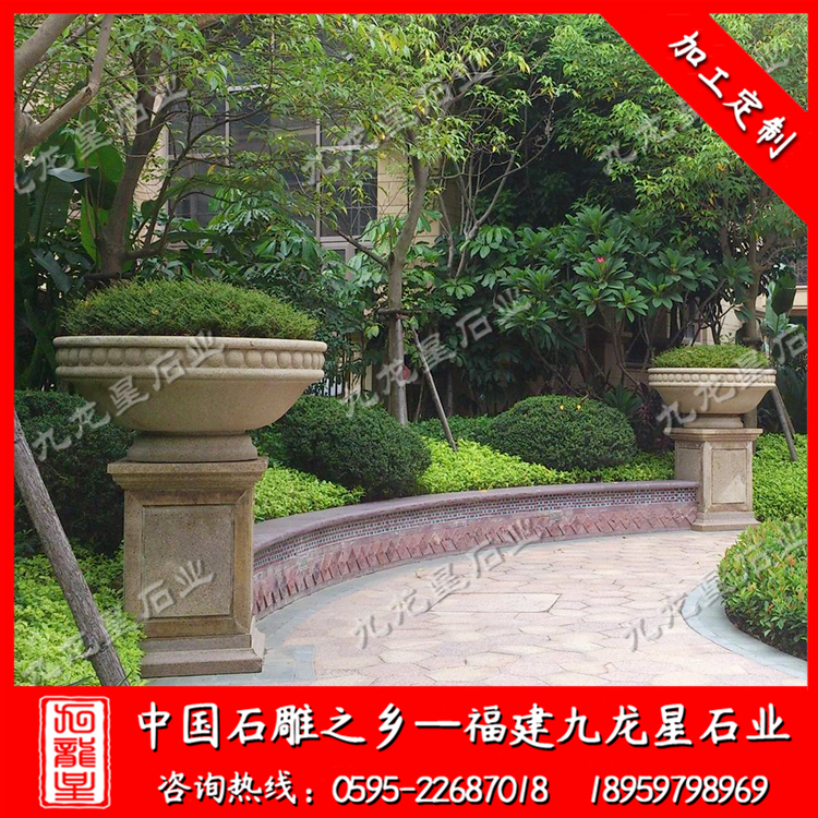 石雕花缽(石雕花盆雕刻 大理石花缽 房地產(chǎn)花盆)——九龍星石業(yè)