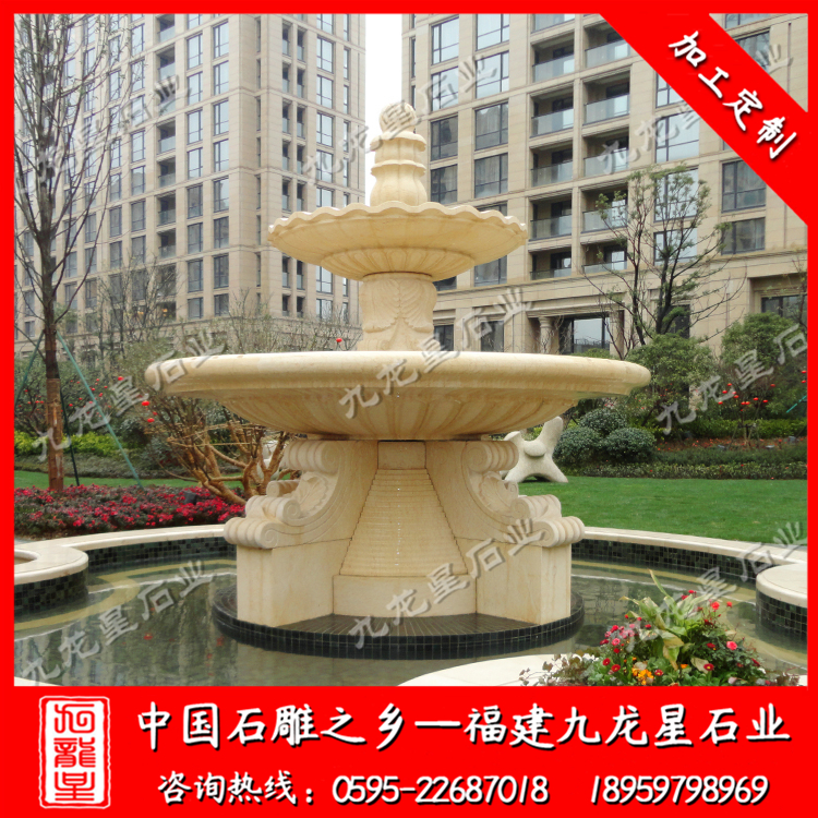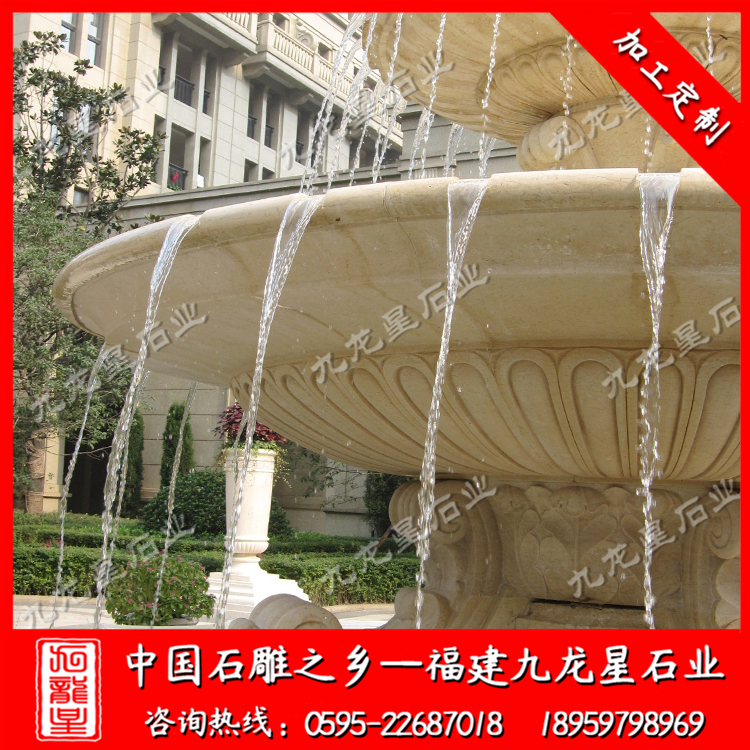 石雕水缽(雙層水景石雕噴泉 埃及米黃石雕水缽)——九龍星石業(yè)
