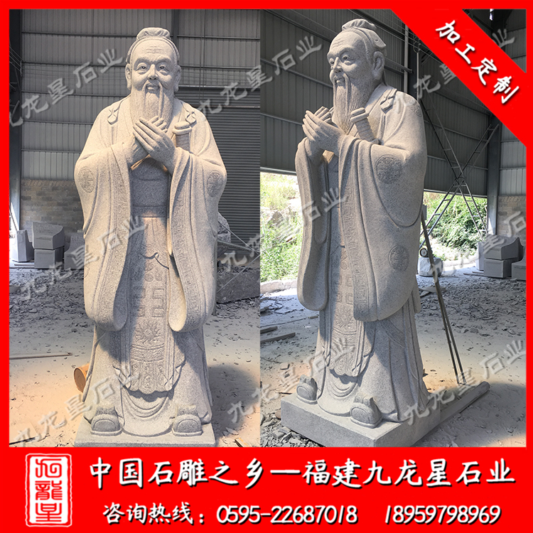 這些規(guī)格的石雕孔子像還不算是最大的,在孔子廟里面的孔子像一般高度長(zhǎng)達(dá)4.5米,高度越大,人們好像對(duì)于孔子的信仰程度就越深,孔子廟是不缺人氣的,每逢中高考的時(shí)候就有很多家長(zhǎng)帶著同學(xué)來(lái)拜孔子廟。平常家長(zhǎng)沒(méi)事也會(huì)來(lái)這邊燒香祈求自己的孩子可以好好學(xué)習(xí)。除了雙手作揖這樣的形態(tài),還有一些比如彈琴的姿態(tài)和與弟子促膝長(zhǎng)談的姿態(tài),這種場(chǎng)景下石雕孔子像的高度一般低于普通成人的高度,是為了看起來(lái)更加逼真。