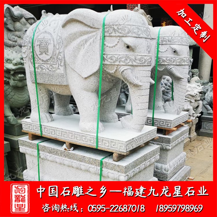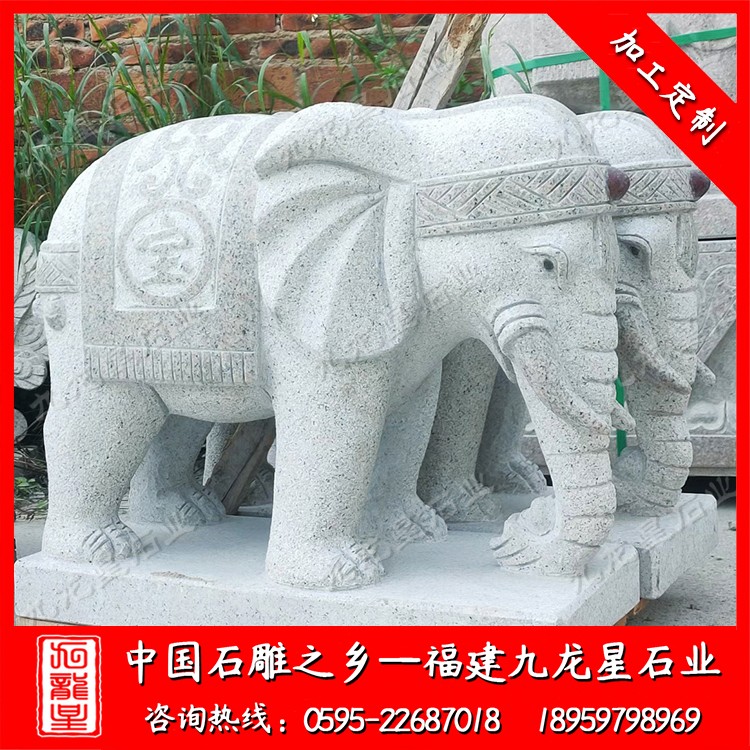 石雕大象(石雕大象的擺放 花崗巖吉象 動(dòng)物石大象雕塑)——九龍星石業(yè)