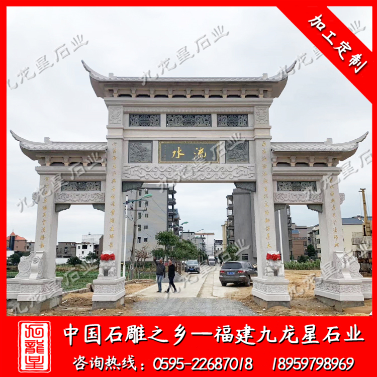 石雕牌坊 您現(xiàn)在的位置: 九龍星石業(yè) > 石雕牌坊 > 石雕牌坊雕刻廠家 農(nóng)村石牌坊 花崗巖牌樓