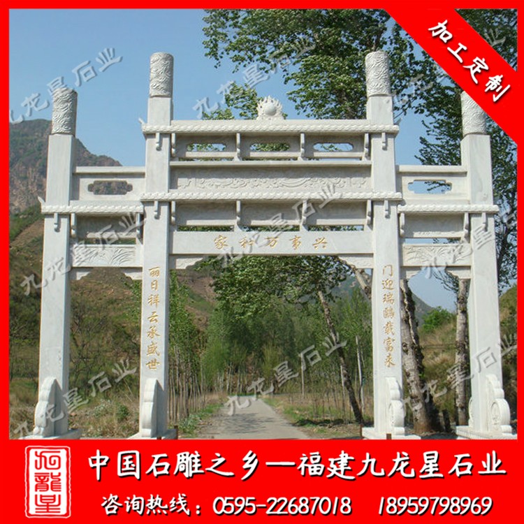 石雕牌坊 您現(xiàn)在的位置: 九龍星石業(yè) > 石雕牌坊 > 大型石雕牌坊廠家 三門石牌坊 石牌樓雕刻