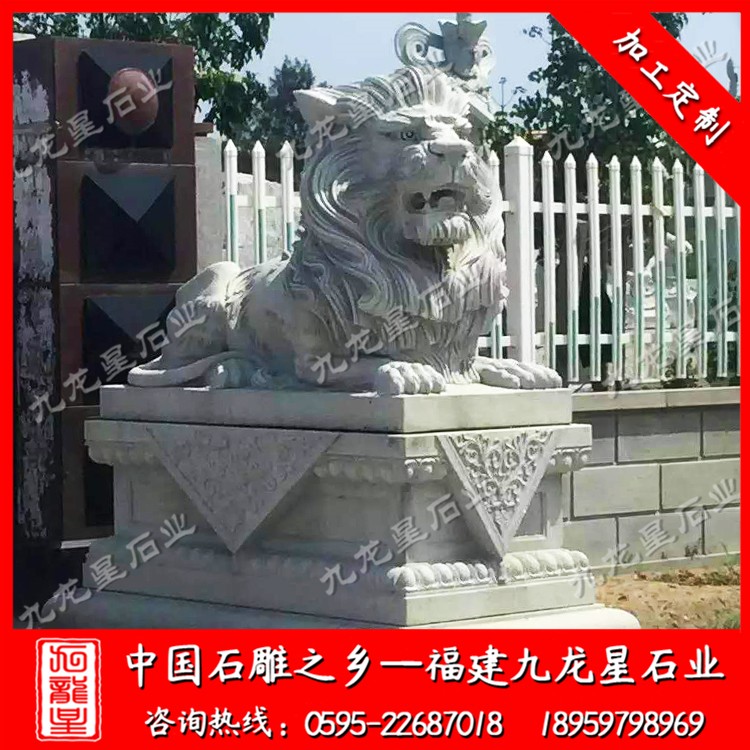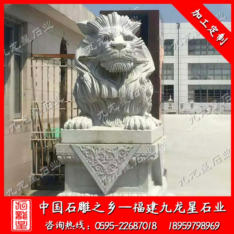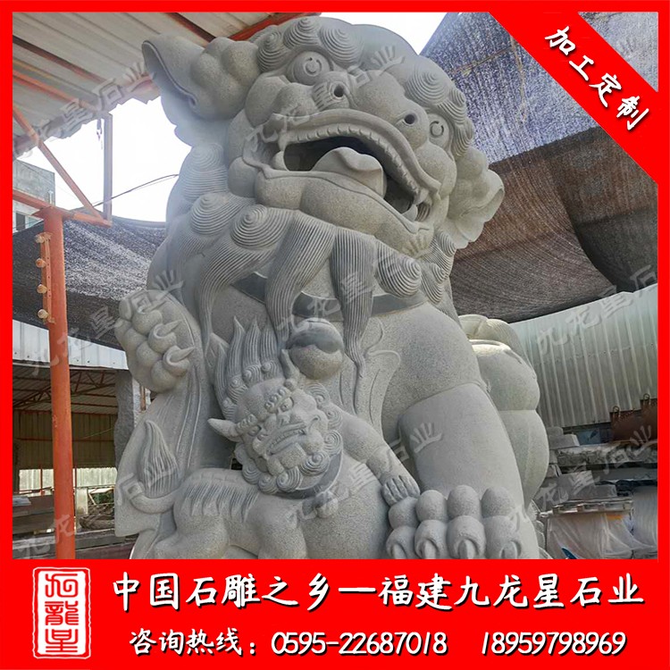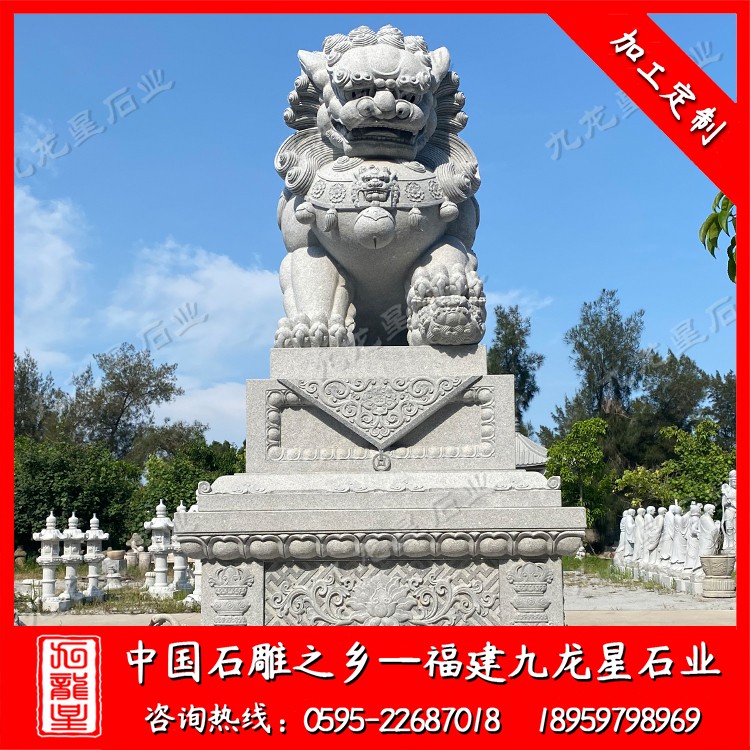 石雕獅子(大門(mén)前石雕獅子一對(duì) 花崗巖石獅子定制廠家)——九龍星石業(yè)