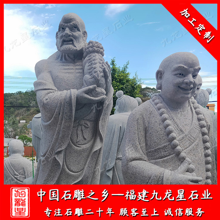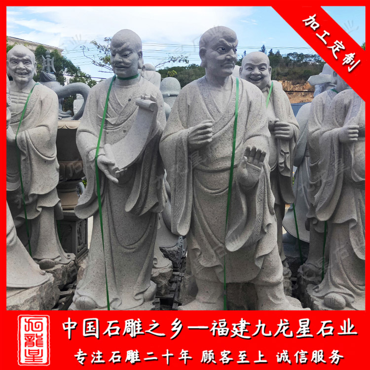 中國佛教雕塑中最有中國特色的,除了女性的石雕觀音,就是男性的十八羅漢石雕像,福建九龍星石業(yè)發(fā)展有限公司位于石雕之鄉(xiāng)--福建惠安,是十八羅漢石雕像雕刻廠家,從事十八羅漢石雕像雕刻制作20多年,十八羅漢石雕像圖片全,制作經(jīng)驗豐富,雕刻工藝jing湛,十八羅漢石雕像材質(zhì)可以為花崗巖、青石、漢白玉等等,望廣大新老客戶前來參觀考察和選購。