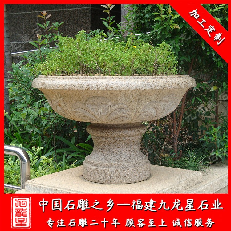 石雕花缽(仿古石雕花缽廠家 中式石雕花盆仿古圖片 庭院石雕花盆)——九龍星石業(yè)