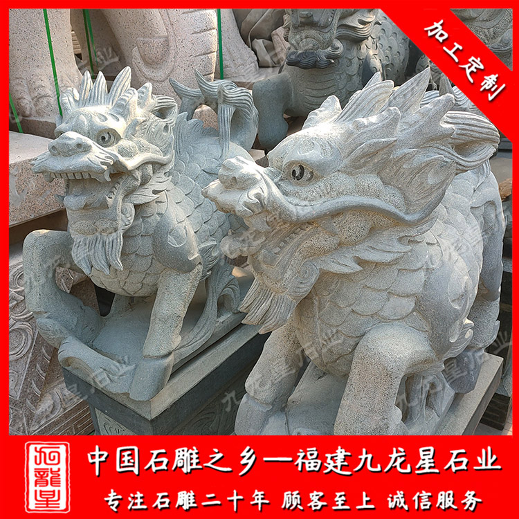 石雕麒麟神獸廠家很多集中在福建惠安,福建九龍星石業(yè)發(fā)展有限公司位于--福建惠安,是麒麟石雕廠家,九龍星人相信每塊石頭都獨馥藝術(shù)氣息,所以善用千年文化雕鑿工藝的研究、傳承、融合和發(fā)揚,使石雕作品承載藝術(shù)文化、體現(xiàn)更多社會價值。九龍星從事石雕麒麟神獸加工制作20多年,石雕麒麟圖片全,石雕麒麟材質(zhì)可以為花崗巖、青石、漢白玉等等,望廣大新老客戶前來參觀考察和選購。