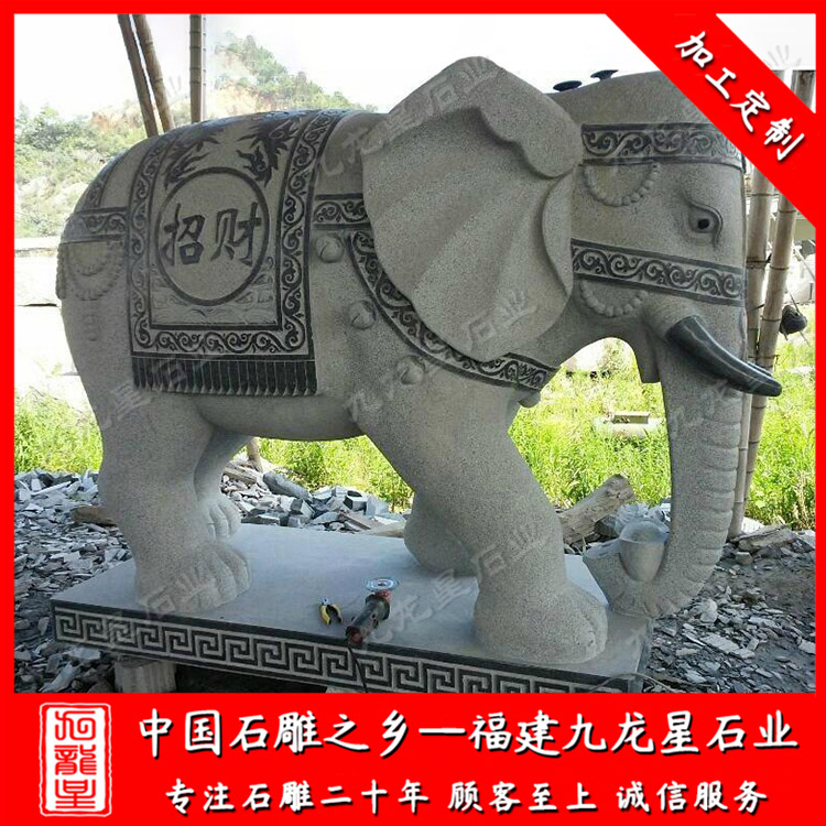 寺廟會擺放青石大象在大門口,景區(qū)人們也通常會擺放一對石材大象。象諧“祥”之音,傳統(tǒng)習俗中,象代表了吉祥。“象”能給人間帶來祥瑞,象微天下太平?!跋蟆奔幢硎竞推?、美好和幸福。大象力大魁武,性靈卻溫和柔順,相傳象為搖光之星生成,能兆靈瑞,古佛就是乘象從天而降;只有在人君自養(yǎng)有節(jié)時,靈象才出現。大象善于吸水,水為財,凡家居窗戶見水,擺放“吉象運財”則能達到汲水納財之功。