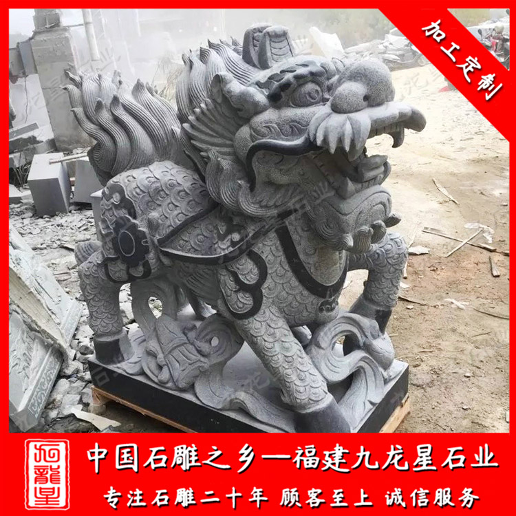 石雕麒麟(一對石雕麒麟雕像圖片 2米石雕麒麟擺放門口)——九龍星石業(yè)