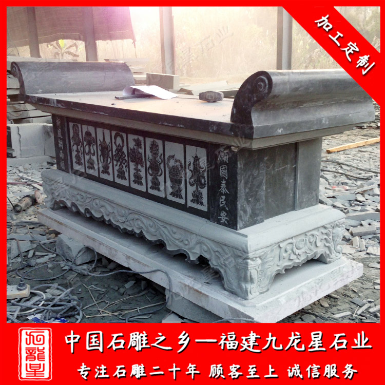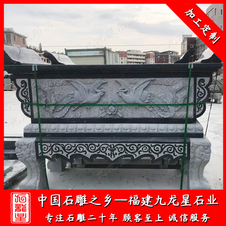 為什么說(shuō)現(xiàn)在大小型的祭祀活動(dòng),廟宇、祠堂、家宅、公司等擺放祖宗牌 位,佛道神靈的地方,大多數(shù)都喜歡用石刻供桌,主要用來(lái)放置香燭貢品牲禮之用顯得大氣,美觀。還有一點(diǎn)是石雕供桌它抗風(fēng)化,抗火,不易發(fā)生火災(zāi)事件,安全系數(shù)高。