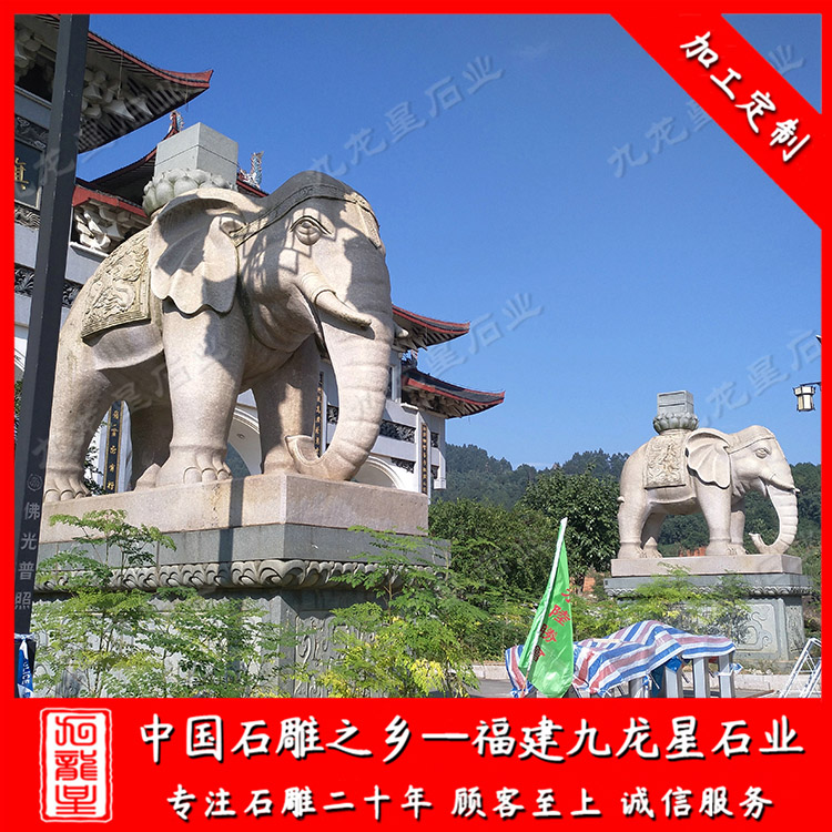 石雕大象(寺院門口石材大象廠家 大象造型的寓意 大象石雕報價)——九龍星石業(yè)