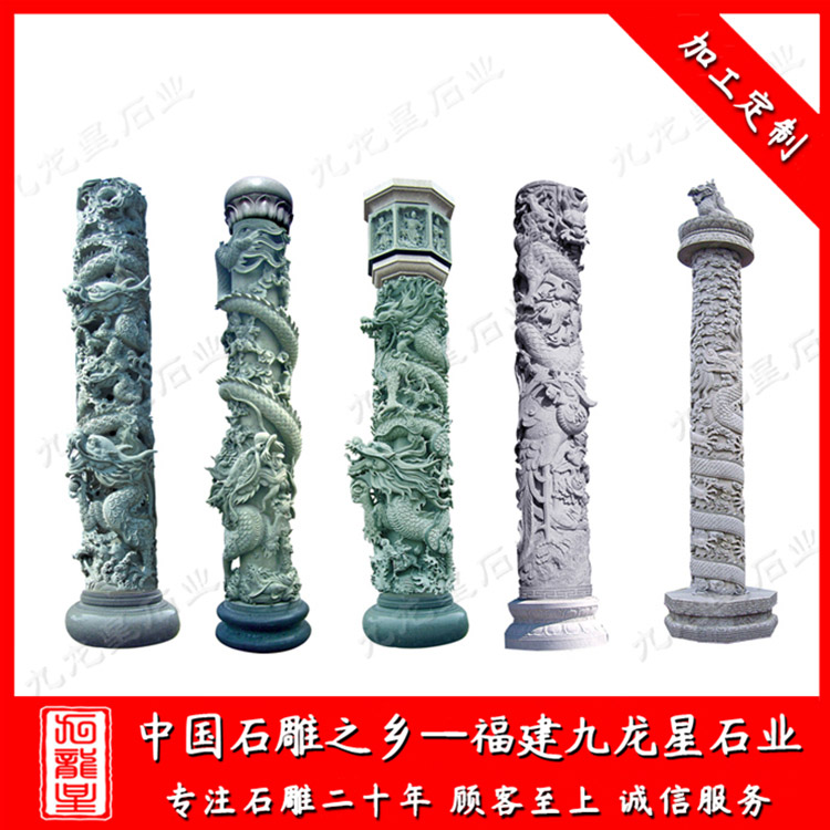 青石石雕龍柱是傳統(tǒng)建筑的重要元素,是中國(guó)龍文化與柱子文化的結(jié)合,不但是我國(guó)石雕藝術(shù)的精粹,同時(shí)也是體現(xiàn)石雕藝術(shù)價(jià)值的作品之一,因?yàn)槭颀堉牡窨绦枰康氖窆に嚮A(chǔ),深厚的雕刻技藝為核心的。雕刻師們賦予了石頭生命,雕刻出了各式各樣的龍柱。