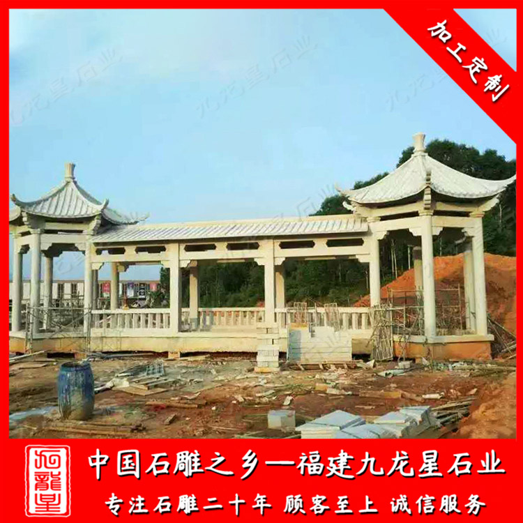 石雕涼亭(園林石亭子廠家 批發(fā)六角石亭子四角石亭子)——九龍星石業(yè)