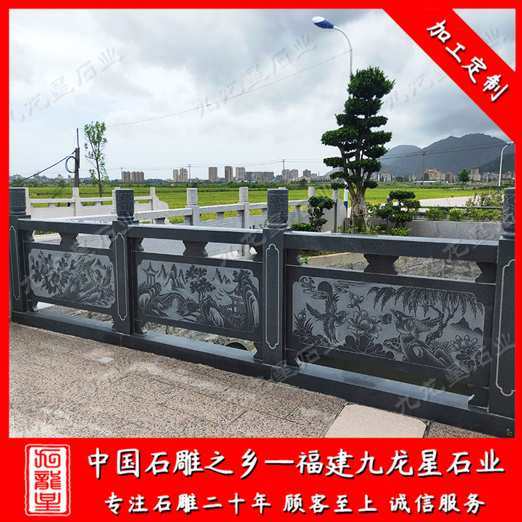 石欄桿護(hù)欄采用的是花崗巖、青石、漢白玉等石料雕刻制作而成,使用壽命長,可塑性非常強(qiáng),可以制作成方形、圓形、橢圓形等各種樣式,并可在上面雕刻各式圖案。石雕欄桿是不可或缺的。石雕欄桿起到防護(hù)安全,在建筑物氣勢方面起著重要的作用。石欄桿應(yīng)用廣泛,適用于道路、橋梁、河道、堤壩,寺廟等。石雕欄桿主要以花崗巖石材和青石石材較常見。