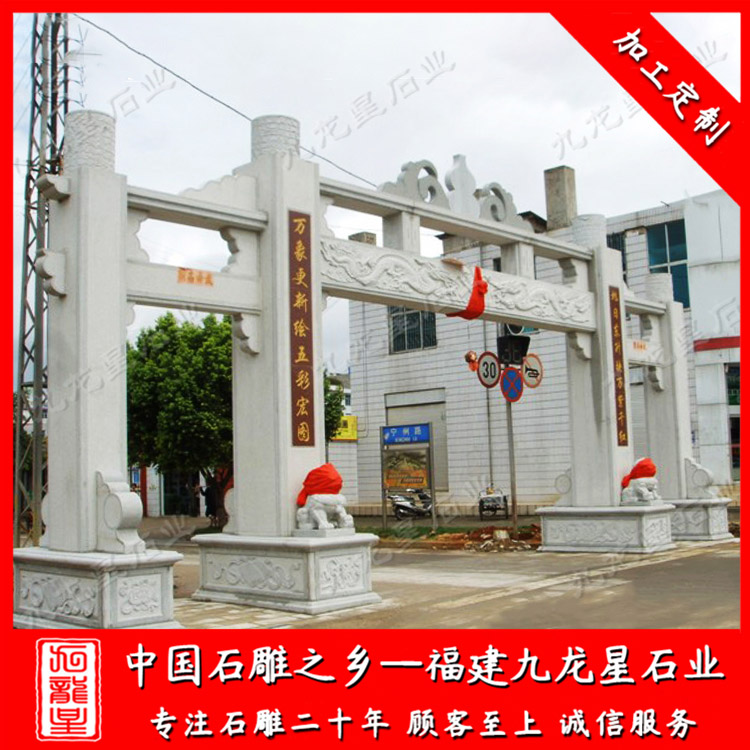 石雕牌坊(新農(nóng)村石雕牌坊樣式 三門三樓石牌坊圖片)——九龍星石業(yè)