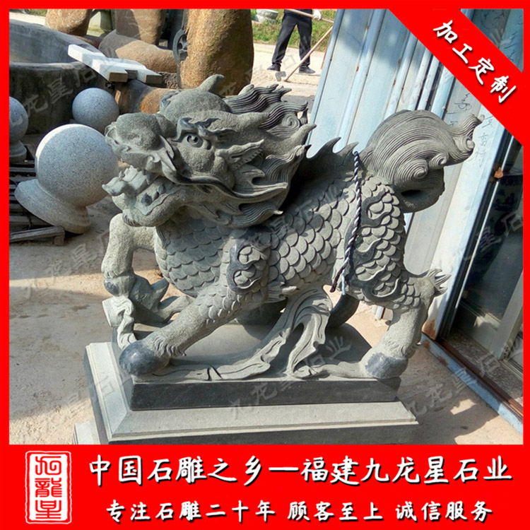 石雕麒麟(石雕麒麟擺件 門口青石麒麟廠家 批發(fā)石頭麒麟)——九龍星石業(yè)