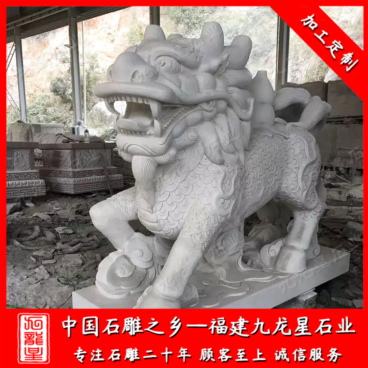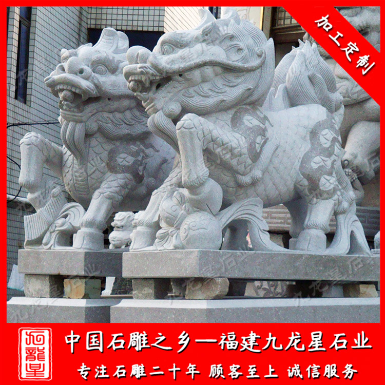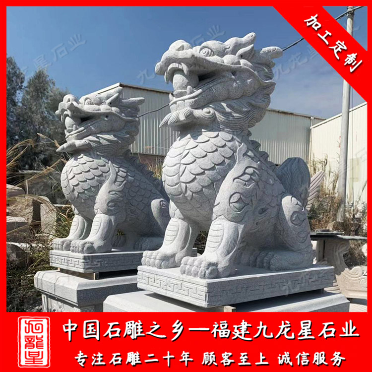 石雕麒麟是用各種天然石材雕刻而成的工藝品,具有很高的價(jià)值。麒麟是神靈瑞獸,是中國長久以來喜聞見樂的裝飾形象,瑰麗多姿,儀態(tài)萬方,仿佛就像是大自然理想的結(jié)晶。石雕麒麟形態(tài)莊重,貴而不俗,充滿靈性,威武而不兇猛,有著向往盛世的精神。