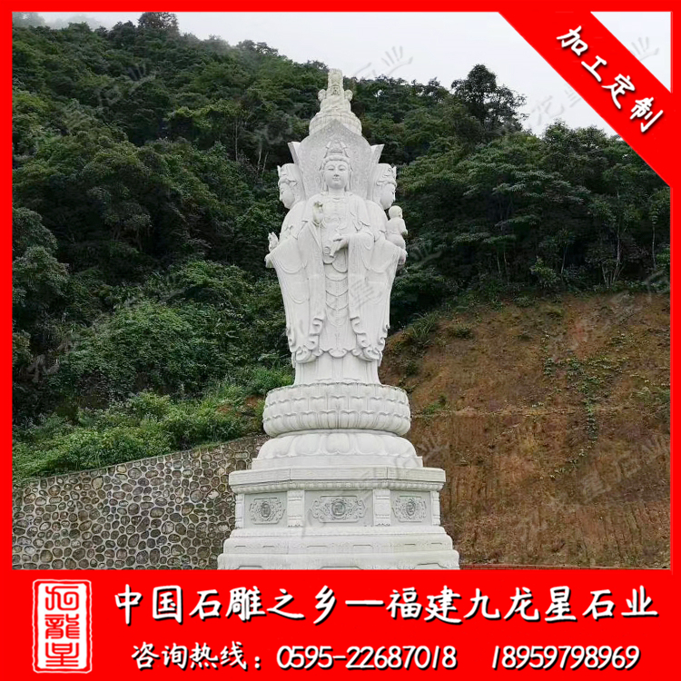 石雕觀音的制作材質(zhì)有許多,有漢白玉、大理石、花崗巖、青石等石材,其石材有著共同的特性,即不易磨損、不易腐蝕、抗風(fēng)化能力強、吸水性較低、保留時間長久。石雕觀音的大小樣式亦各不相同,即因人而異、因地制宜。石雕觀音的雕刻樣式有多樣,有送子觀音、兩面觀音、三面觀音,其雕刻的復(fù)雜程度決定石雕觀音加工過程中的技術(shù)要求的精湛,及精益求精。