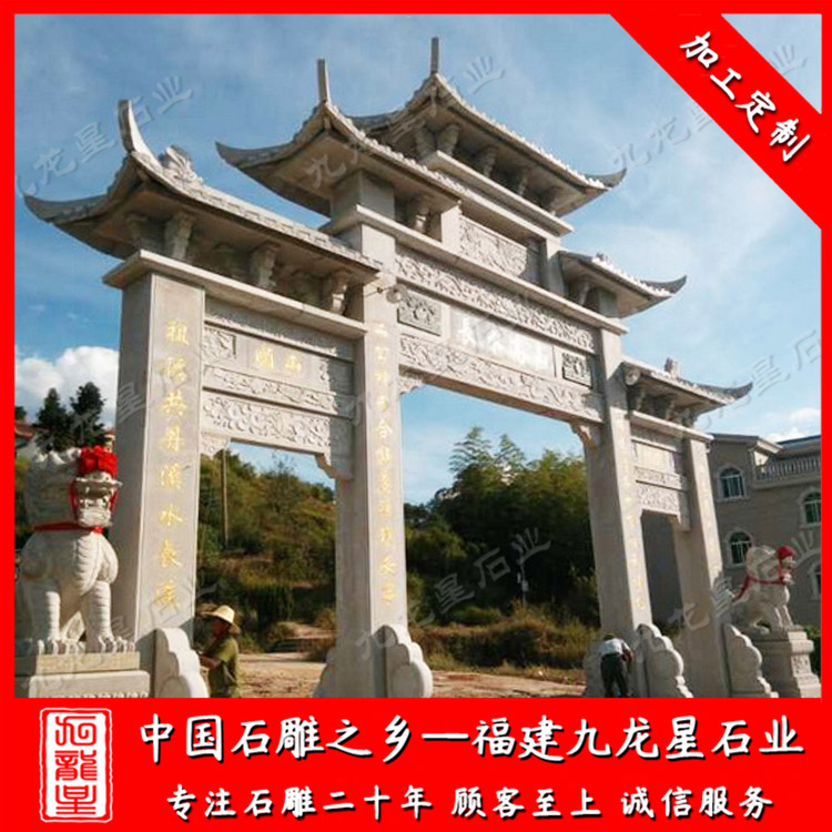 石雕牌坊(石牌坊廠(chǎng)家加工新農(nóng)村石牌坊 農(nóng)村入口石牌坊款式)——九龍星石業(yè)