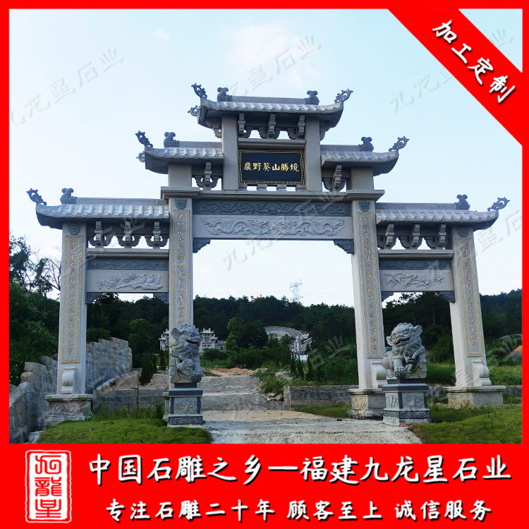 石雕牌坊(祠堂石牌坊款式 家祠門口石雕牌坊 三門石牌樓廠家)——九龍星石業(yè)