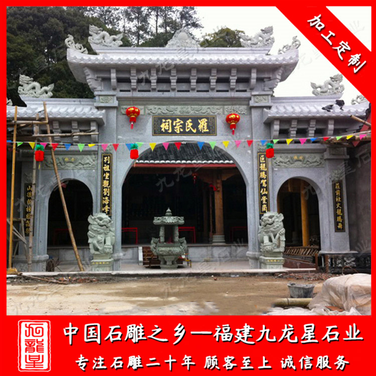 祠堂石牌坊承載了一個(gè)家族的血脈親情,它不僅僅是建筑搭配,也是傳承文化的寓意。祠堂石牌坊不會(huì)做太大,以單門牌坊和三門石牌坊為主。在家祠門口設(shè)立一座牌坊,可以突出整個(gè)姓氏家族的標(biāo)志。