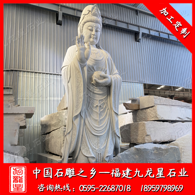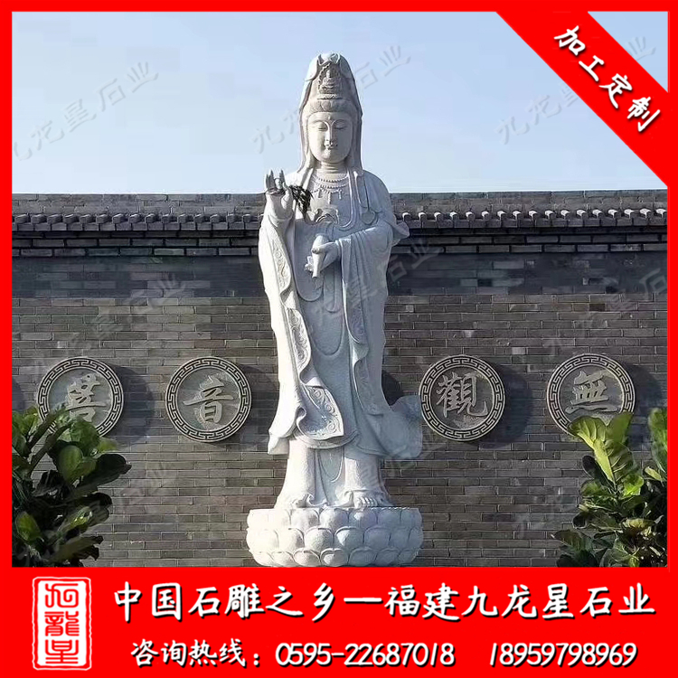 石雕觀音在不同的地方亦有著其不同的寓意所在,在寺廟它是供人們參拜祈求平安等心愿的精神寄托,在廣場(chǎng)等旅游景點(diǎn),其亦是一處充滿(mǎn)靈氣與生機(jī)的 。它給予了周?chē)幍沫h(huán)境增添了藝術(shù)的氣息。但不管在何處,它始終是人們心中大慈大悲救苦救難的觀音菩薩。