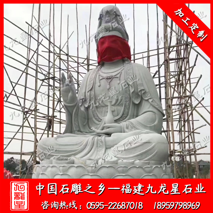 石雕觀音(大慈大悲石雕觀音 芝麻白觀音 大型石雕佛像)——九龍星石業(yè)