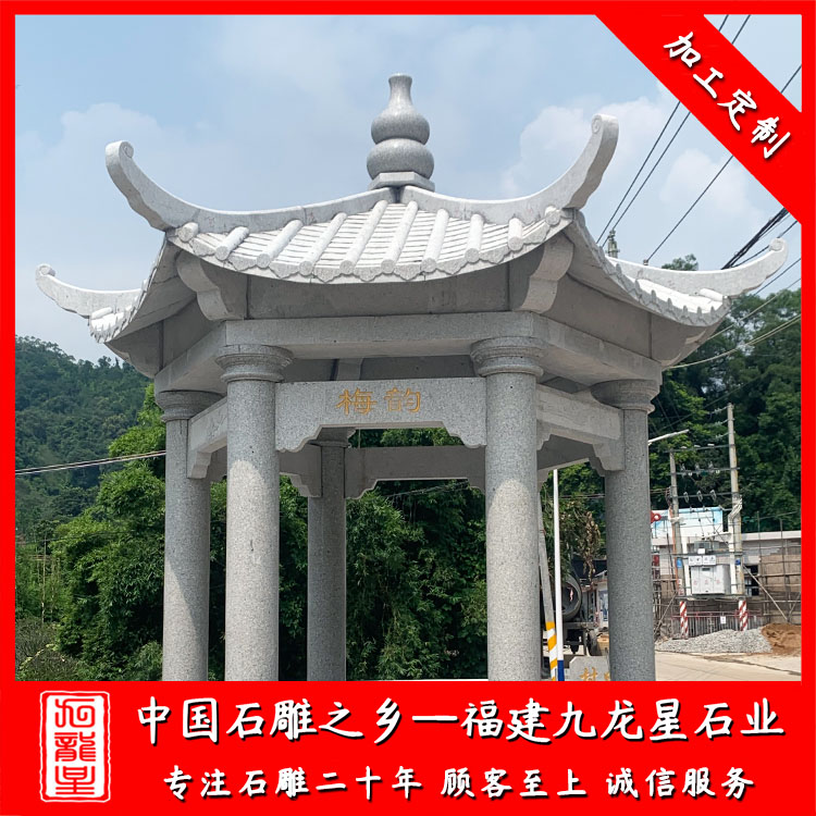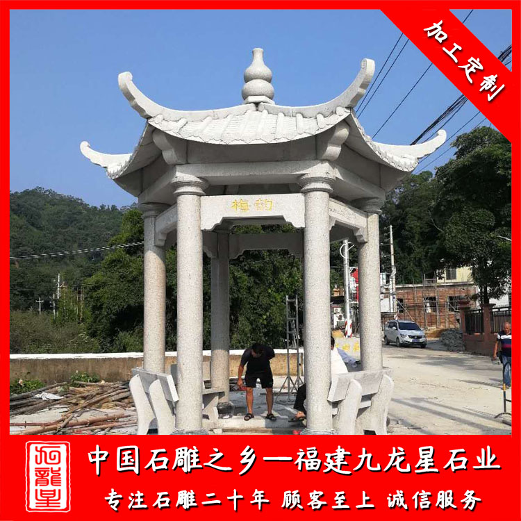 石雕涼亭(石雕涼亭樣式 花崗巖涼亭圖片 仿古六角石雕涼亭)——九龍星石業(yè)